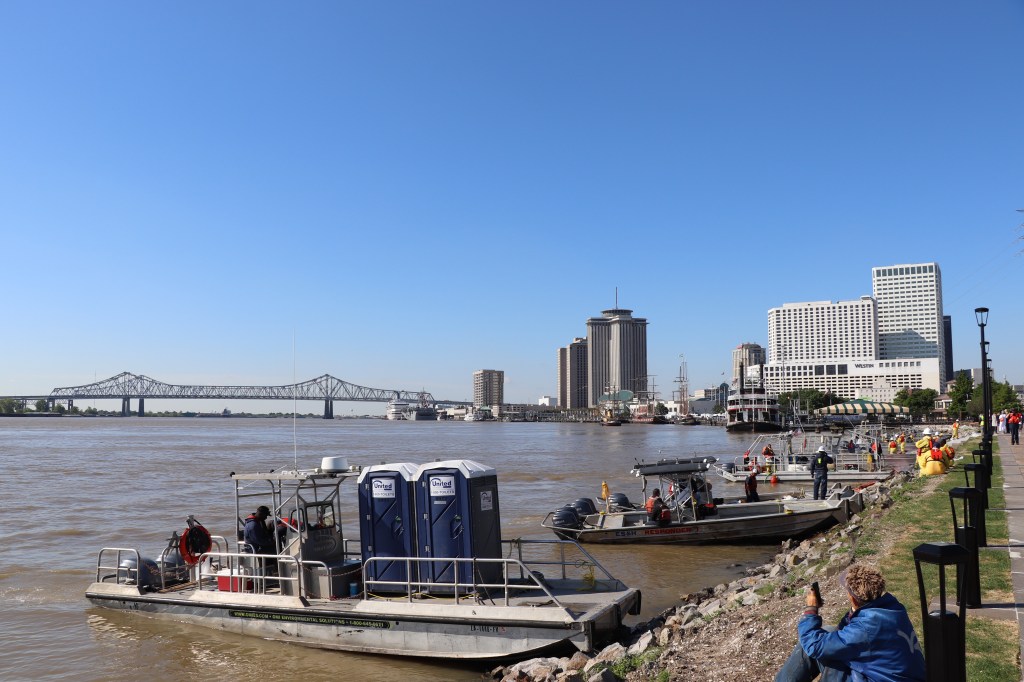 In the time we had remaining, we walked down to the Mississippi River. New Orleans is the fourth location along the Mississippi that we have visited (the others being St Paul MN, St Louis MO, and Memphis TN), and each has its own charms. Following a wet and snowy winter upstream, the river was higher than normal, but the flow was gentle. There was little activity on the river (due primarily to the time of day), but it doesn’t take much to imagine it busy with commerce and pleasure crafts.
