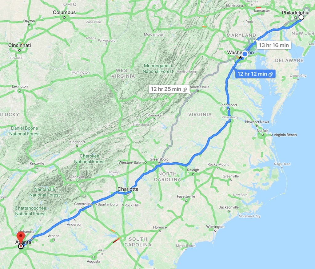 Following a long but uneventful drive from south Jersey to Atlanta on Friday (with us dodging thunderstorms from the DC area through South Carolina), we settled into our hotel in suburban Atlanta. We arrived too late to catch the Braves’ Friday night game vs the Chicago Cubs, but we expected that would occur, following a 13 hour drive.