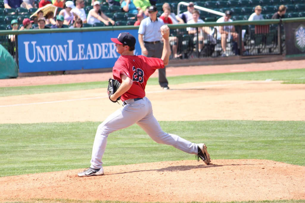 Portland Sea Dogs starter Mike McCarthy delivers a pitch in the second inning at Northeast Delta Dental Stadium. (Photo credit: Jeff Hayes)