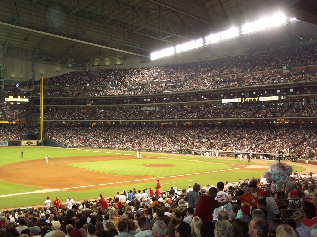 With snacks and drinks in hand, we headed toward our seats. The hometown Astros hosted the St Louis Cardinals for the evening contest, and the NL Central Division rivals drew a large crowd. Because of the rivalry, good tickets were hard to secure, so our seats were located in the lower level, between third base and the left field foul pole. Though not the best of views, we settled in to our seats, awaiting the first pitch.
