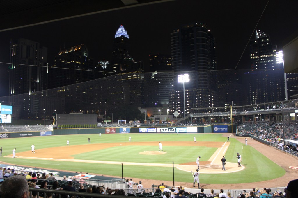 I had only caught a glimpse of the ballpark, and it was already my favorite!!! My previous favorite (PNC Park in Pittsburgh) also features a magnificent skyline, but for some reason, this one seemed more majestic. As we walked along the concourse toward home plate, every view seems better than the last. I began wondering if I needed to move to Charlotte, if for no other reason that to visit this place as often as possible.