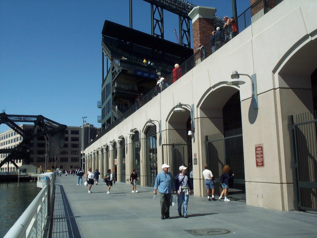 Walking past the centerfield wall, we arrived at the South Beach Yacht Club. Massive in size, there were more than 100 yachts moored at the club, though there did not appear to be many sailing before noon. Continuing our exploration, we wandered along Pier 40 before making our way back toward the stadium. While the Mission Bay area had some points of interest within walking distance of the park, we decided to invest our time wandering the inside of Pac Bell Park before game time.