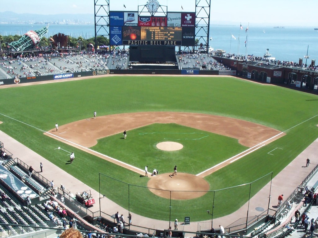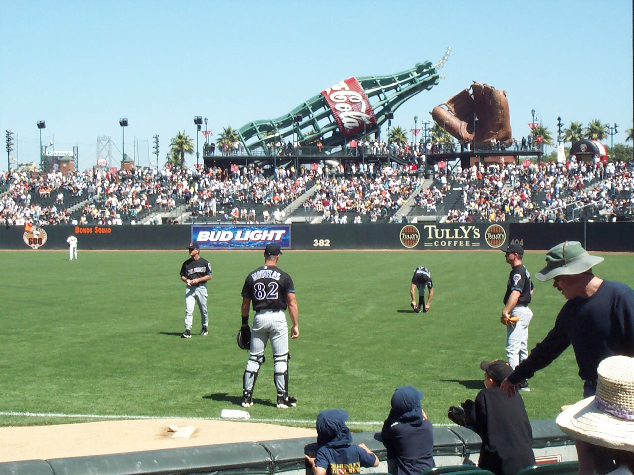 Arizona scored a run in the top of the first inning, employing “small ball” to take an early lead. The starters traded scoreless frames until the bottom of the fourth inning, when Barry Bonds led off the bottom of the inning with a solo home run. Fittingly, the home run left Pac Bell Park, splashing down in McCovey Cove. Though we didn’t see it firsthand, a replay of the home run on the video board showed fans in kayaks on the Cove frantically scurrying for the ball. Plating another run in the bottom of the inning, the Giants took a 2-1 lead.