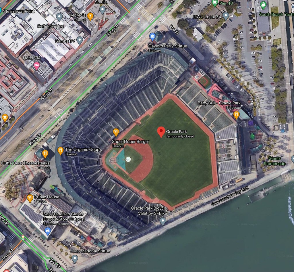 While on vacation in San Francisco, my brother and I took in a Sunday afternoon baseball game at Pac Bell Park (now known as Oracle Park), where the Giants hosted the visiting Arizona Diamondbacks. From our hotel near Union Square, we decided to walk to Pac Bell Park, since the weather was crystal clear with temperatures in the 60s. Our walk took about 25 minutes (covering about one and one-quarter miles), mostly on 3rd Street. For those old enough to remember, we walked a path that was part of the famous car chase in the movie Bullitt (1968).