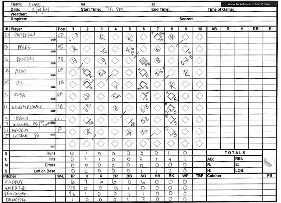 Pittsburgh hosted the St Louis Cardinals, who scored early and often. St Louis scored six runs in the first four innings, the scored 13 runs in the last three frames, on the way to a 19-4 drubbing of the hometown Pirates. With the game out of hand for the Pirates, they sent catcher Keith Osik to the mound to pitch the top of the ninth inning. As might have been expected, Osik fared poorly, surrendering five runs on five hits. This outing marked Osik’s second MLB pitching performance. In 1999, he also pitched an inning during a blow out, and his performance then was only slight better than this night.