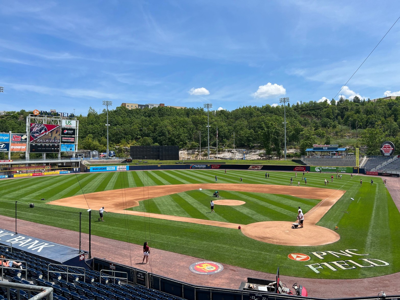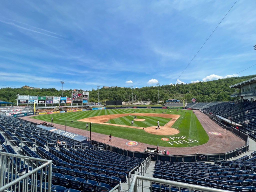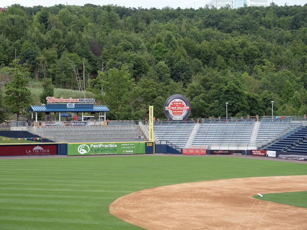 Once we cleared the storms, the remainder of the trip was uneventful, which allowed us to make up for time lost to the storms. Luckily, virtually all of the travel to the stadium was along I-81 north, as both the hotel and the stadium located just off the interstate. Though clouds threatened from time to time, particularly shortly after arriving at the hotel, the remainder of the day into night was dry. With little to see or do near the hotel, we dropped off our bags, and headed to the ballpark.